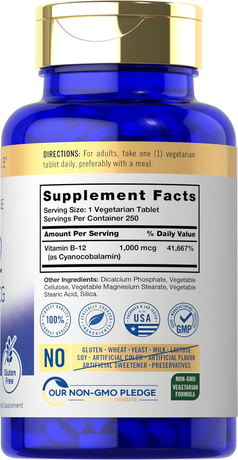 HIGH POTENCY: Delivers 1,000 mcg of Vitamin B-12 in each vegetarian tablet for maximum support