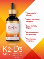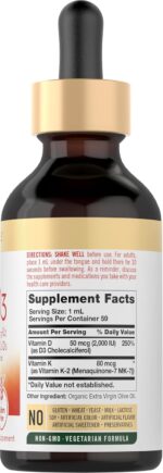 HIGH ABSORPTION: Features 80 mcg of Vitamin K2 (MK-7) plus 50 mcg of D3 in each dropperful