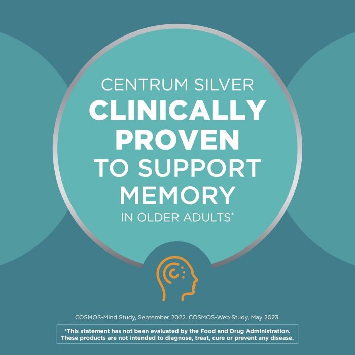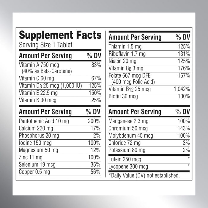 Centrum Silver Multivitamin for Adults 50 Plus brings you a tailored senior multivitamin/multimineral supplement to help support full body wellness (1). This multivitamin contains Vitamin D and calcium to help support strong bones, B-Vitamins to help promote heart health, zinc to help support normal brain function, and lutein and Vitamins A, C, and E to help support healthy eyes (1, 2). Key nutrients in these multivitamins help fill in nutritional gaps to promote overall wellness and vitality (1). This multivitamin is verified Non-GMO (3) and gluten free for a variety of dietary preferences. These tablets feature a smooth coating that makes these adult vitamins easy to swallow. Simply take one of these supplements daily to provide your body with vitamins and minerals. Help support full body wellness (1) with Centrum multivitamins, clinically shown to support cognitive health in older adults (1) from the number 1 doctor and pharmacist recommended multivitamin brand. (1) These statements have not been evaluated by the Food and Drug Administration. This product is not intended to diagnose, treat, cure or prevent any disease. (2) Not a replacement for cholesterol-lowering drugs (1) (3) Read more about our Non-GMO standard on Centrum’s official website