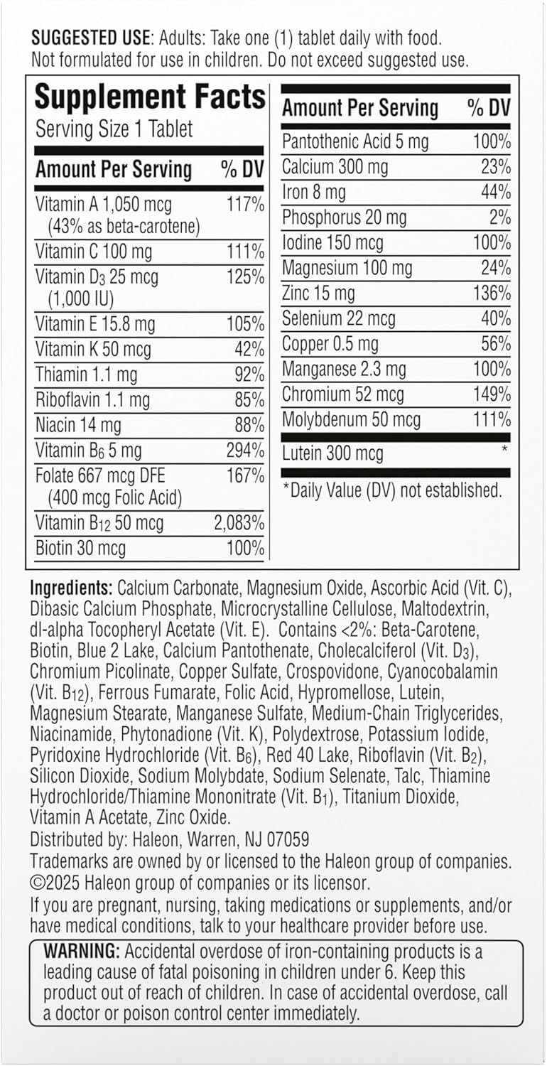 Specially formulated women’s multivitamins that support the heart, brain, eyes and overall health of women age 50+ (1, 2)