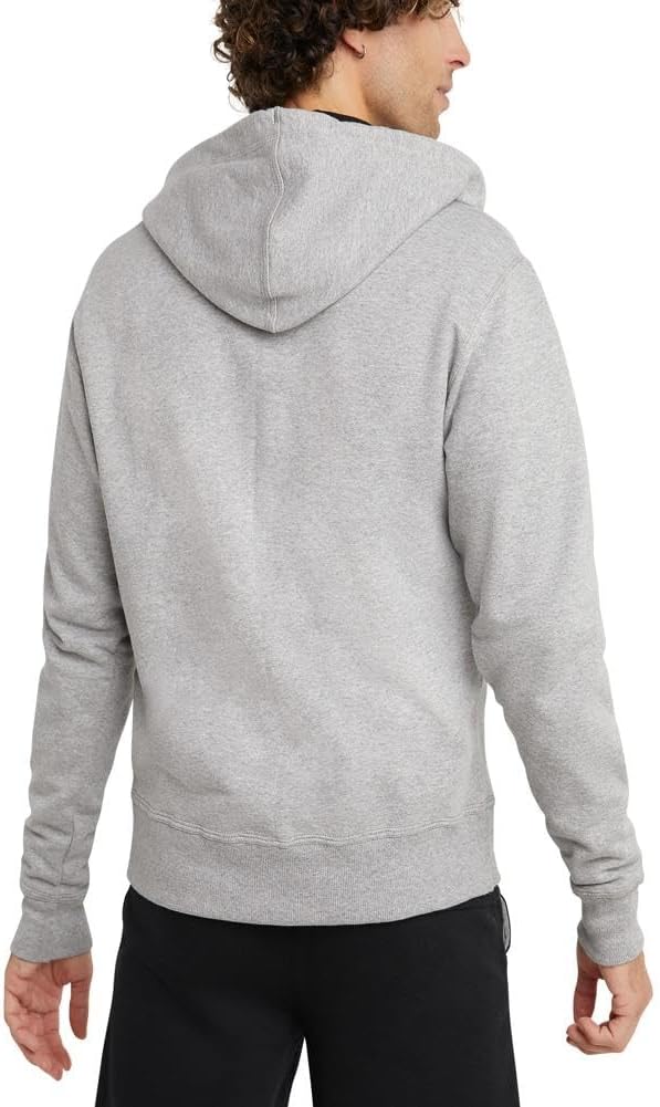 ZIPPED UP STYLE. This iconic zip-up hoodie is the perfect men’s sweatshirt to get you from here to there in cool comfort. Made from a durable fleece fabrication that resists pilling and shrinkage, this hoodie is a lifer, no doubt. You’ll love the double-lined hood designed to keep you warm, while the ribbed cuffs and hem add structure and classic sweatshirt swagger. Two front pockets keep essentials close while the zip-up style lets you choose the look. Pair this sweatshirt with your best Champion joggers or shorts for a custom fit all your own. Stitched C logo sits on the chest while the iconic C logo patch hits at the wrist.