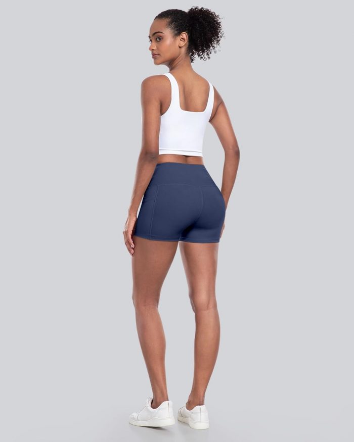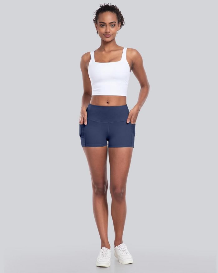 Customers find these workout shorts comfortable and well-fitting, particularly noting their true-to-size fit and waist that stays put. The material is durable, thick, and not see-through, while the pockets work well with phones and keys. Customers appreciate the flattering design, with one noting they’re suitable for thick thighs, and find them excellent for running and gym activities. The ride-up aspect receives mixed feedback – while some say they don’t ride up or roll down, others mention they roll up a bit on the legs.