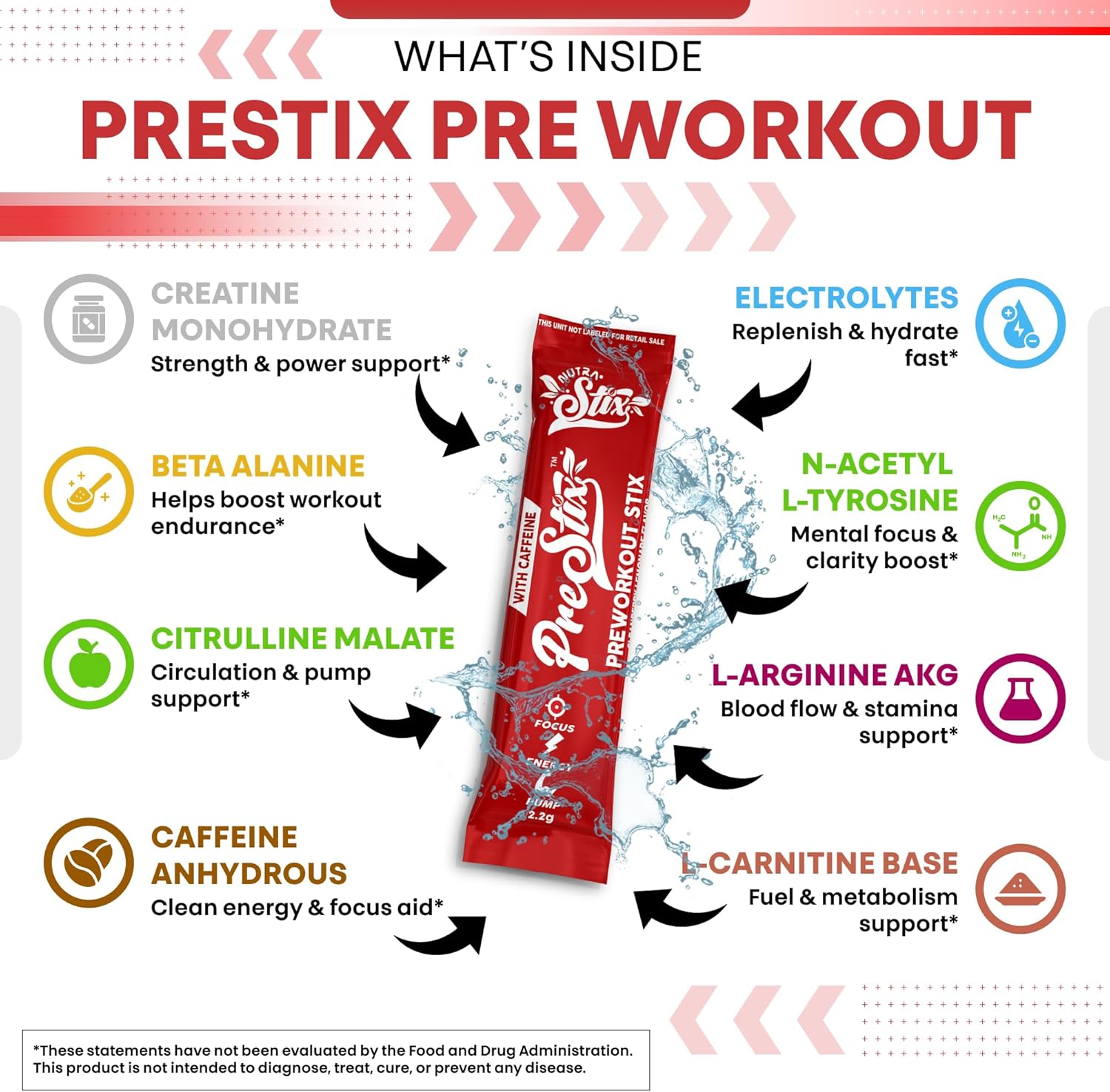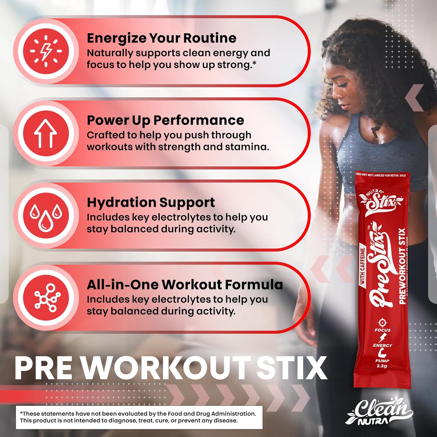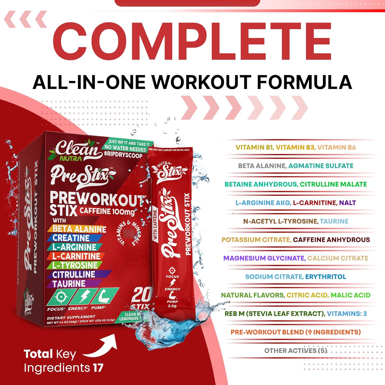 All-in-One Pre Workout Formula – Pre Stix by Clean Nutra delivers a targeted pre workout blend featuring creatine monohydrate, beta alanine, L-citrulline malate, taurine, caffeine, L-arginine, and L-tyrosine. Designed to support nitric oxide booster routines, creatine gummies, creatine capsules, creatine powder, and gym-focused stacks that include amino acids supplement ingredients and pre workout powder for men or women.