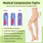 Excellent. These medical compression tights are crafted from 80% nylon and 20% spandex for optimal elasticity and durability. The flattering high-waist design elongates your legs and provides a secure, comfortable fit for all-day wear.
