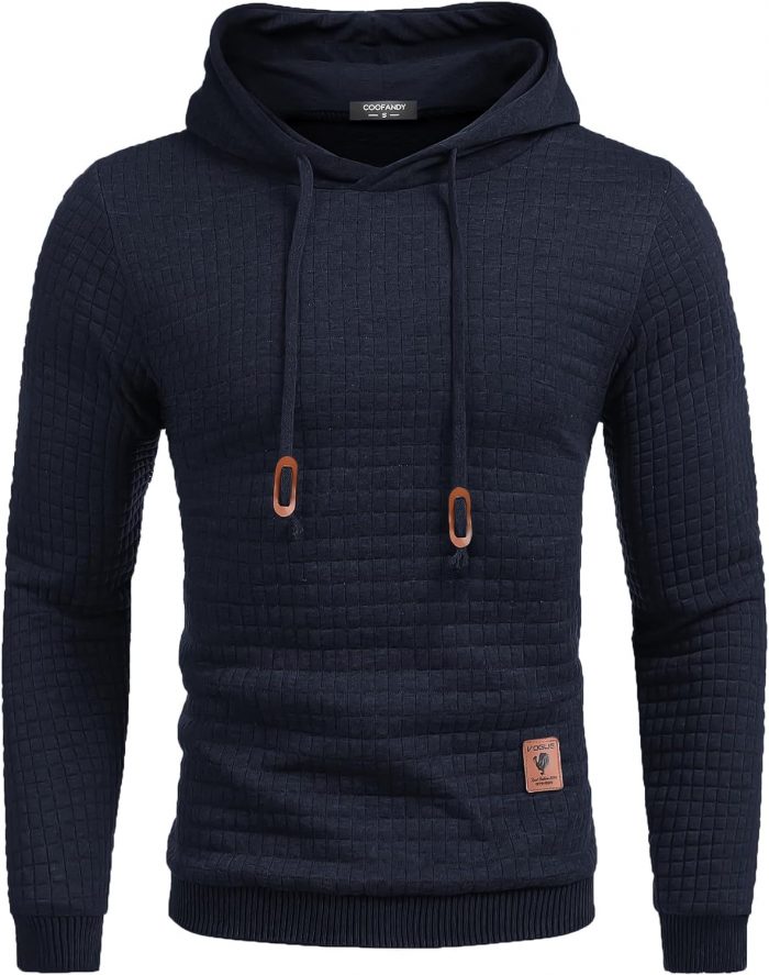 Mens Hooded Sweatshirt Casual Long Sleeve Drawstring Waffle Knit Pullover Hoodies