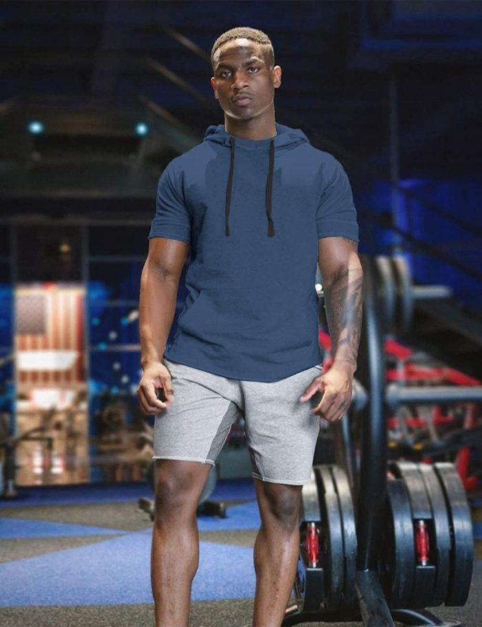 Short sleeve hoodie is the best pairing item for all seasons. Fitting for a wide range of movement. Perfect for gym, bodybuilding, workout or other training and sports. Suitable for fitness, powerlifting, running, jogging, cycling, football and basketball, etc.