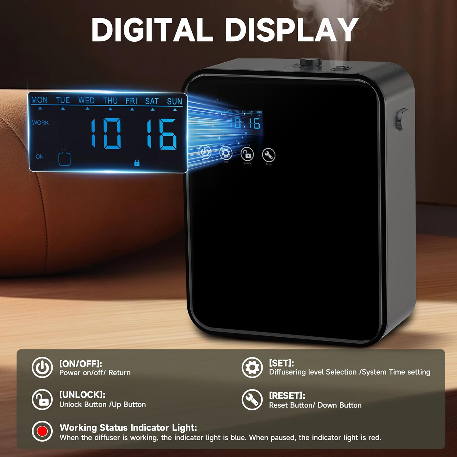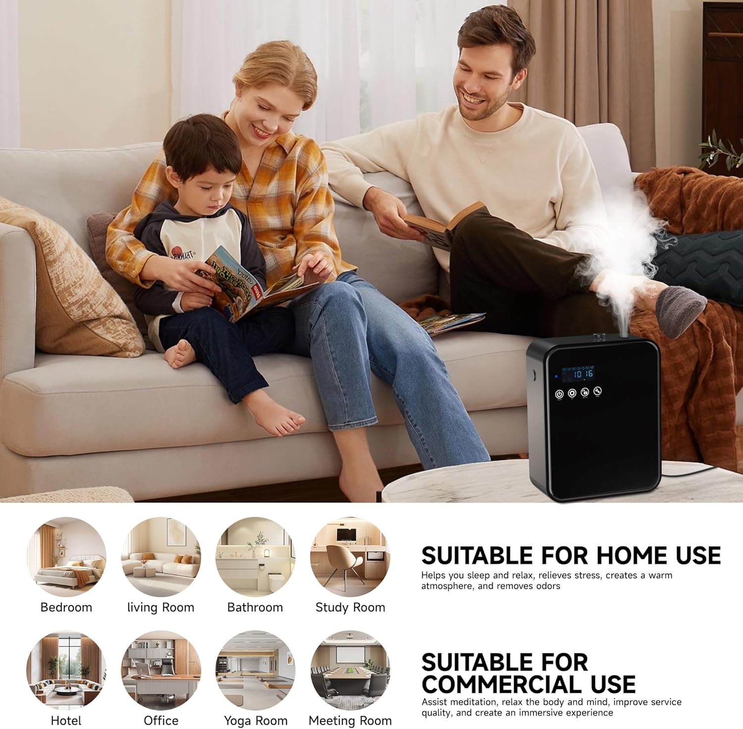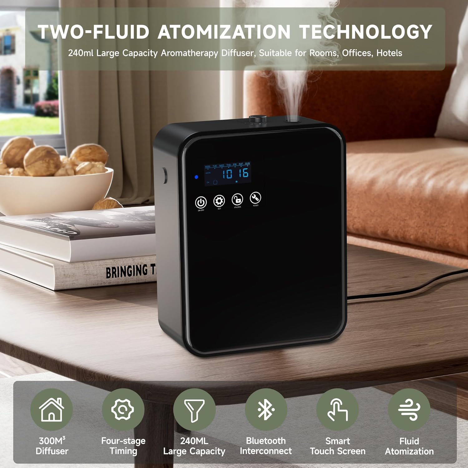 [Bluetooth & APP Control] Connect via Bluetooth for a fully customizable aromatherapy experience. Set schedules, adjust duration, and control fragrance intensity effortlessly—reducing the need for frequent refills and simplifying maintenance for a consistently fresh living space.