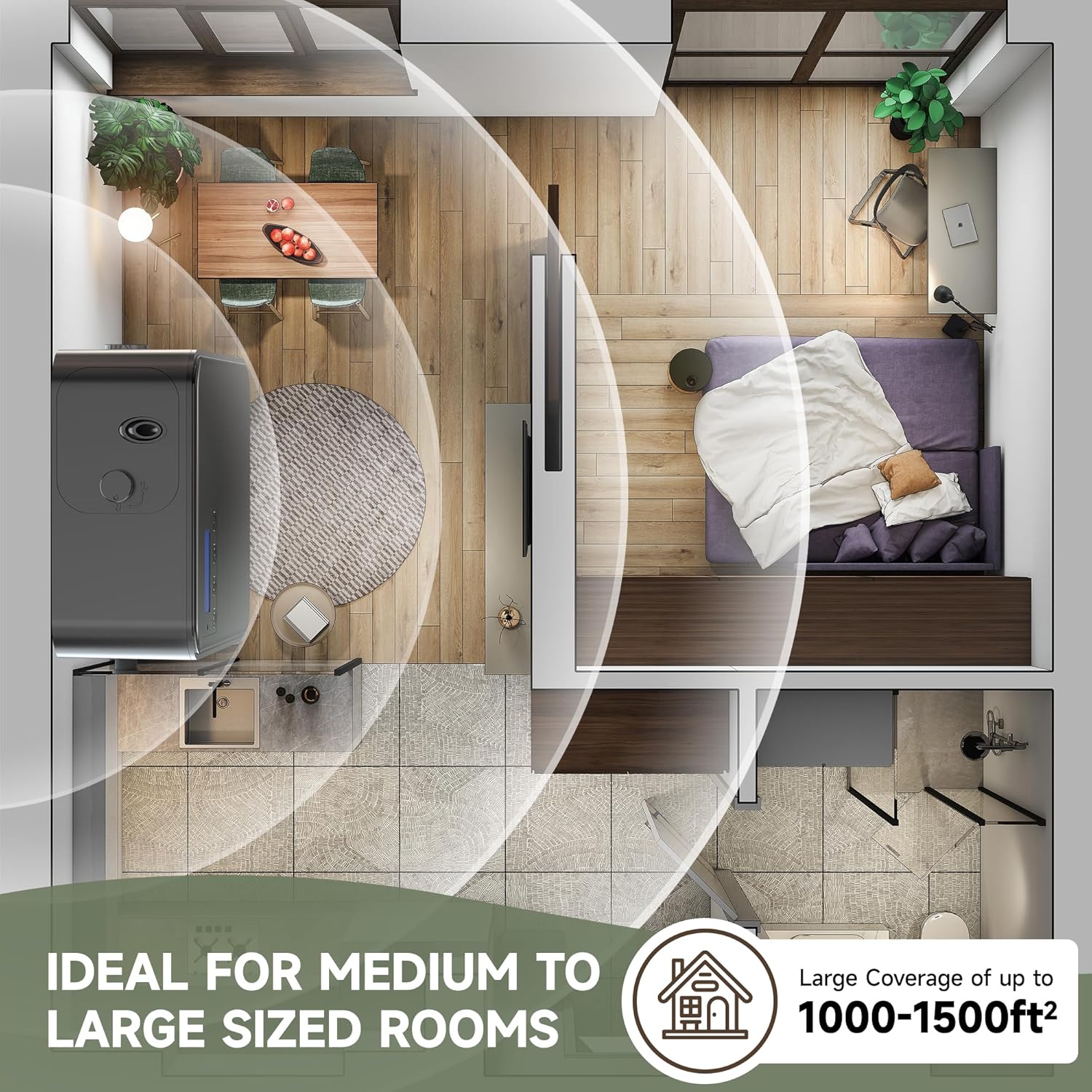 [Wide 2500 Sq.Ft Coverage] With a 250mL large-capacity oil bottle and powerful diffusion, this essential oil diffuser quickly fills large rooms, offices, living rooms, or bedrooms with consistent, long-lasting fragrance—ensuring even coverage in every corner.