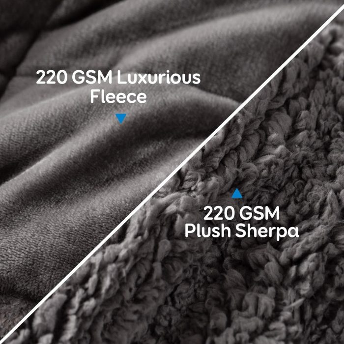 Live in the Cloud: Feel what it is like to live in the cloud thanks to Sherpa fleece weighted blanket with 220 GSM smooth fleece on one side and 220 GSM fluffy Sherpa on the other. Enjoy luxurious softness while you are resting, watching TV, taking a nap or enjoying outdoor activities