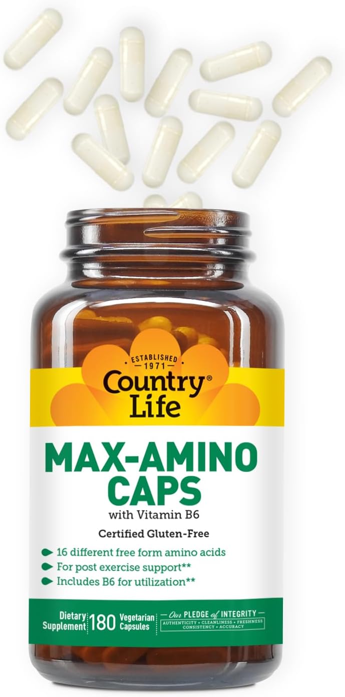 AMINO ACIDS – Country Life’s Max-Amino with B-6 has 18 types of Amino Acids. Amino Acids are the building blocks of proteins. Supplementation with Amino Acids provides nutritional support for your body. Country Life’s Max Amino is a complex containing 16 different free form amino acids that your body can utilize, especially following exercise.