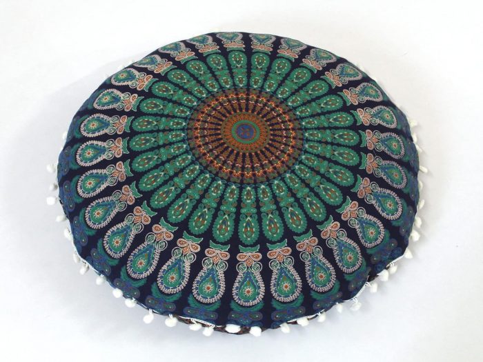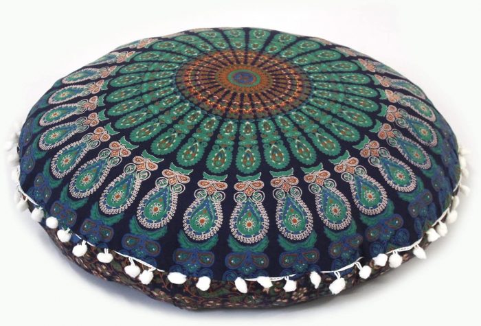 Our large round pillows have a pompom tassel border and bring a boho chic look to any bedroom, living room, foyer, TV room, office, guest room or yoga meditation room. Unique gift idea.