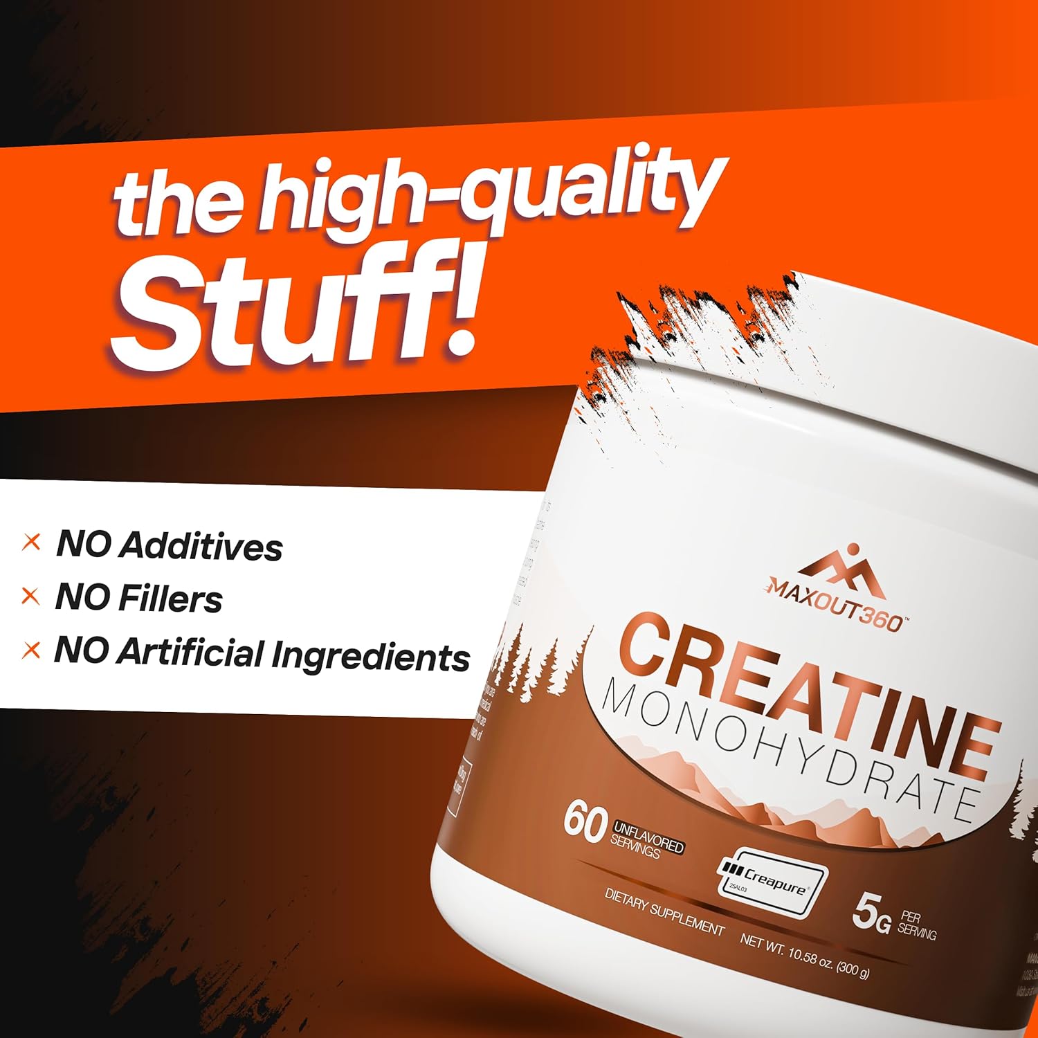 ENHANCED SOLUBILITY FOR EASY MIXING: Naturally, creatine monohydrate powder is not 100% water soluble (doesn’t mix well with water). Creapure creatine monohydrate enhances solubility so it can dissolve more easily with warm to room temperature water. Experience and enjoy our german creatine that is clump-free mix with no bloating or aftertaste. Our unflavored Creapure contains 60 Servings (5000mg / 5 grams of NSF certified creatine per serving). Take one serving of 5 grams daily and consistently in the morning, with your pre-workout, post-workout or in the evening for best results.