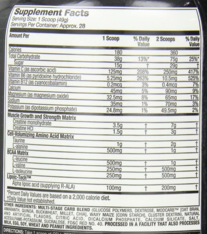 Ultimate Lean Muscle-Activating Creatine Formula: MuscleTech Cell-Tech is a scientifically engineered, third-generation creatine formula featuring a clinically validated blend of creatine monohydrate and carbohydrates. Fruit Punch flavor. 27 scoops.