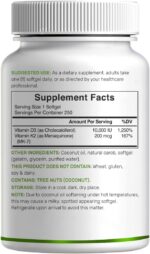 Special Features – Max strength vitamin D3 with K2 sunshine vitamin complex, essential fat-soluble vitamins D3 as cholecalciferol and K2 in its superior menaquinone MK7 form, healthy coconut oil liquid carrier that is designed to maximize overall absorption.