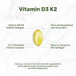 2 in 1 Support – Liquid vitamin D3 with K2 supplement, provides 5,000iu vitamin D3 plus vitamin K2 100mcg (MK7) in a once daily easy-to-swallow mini softgel.