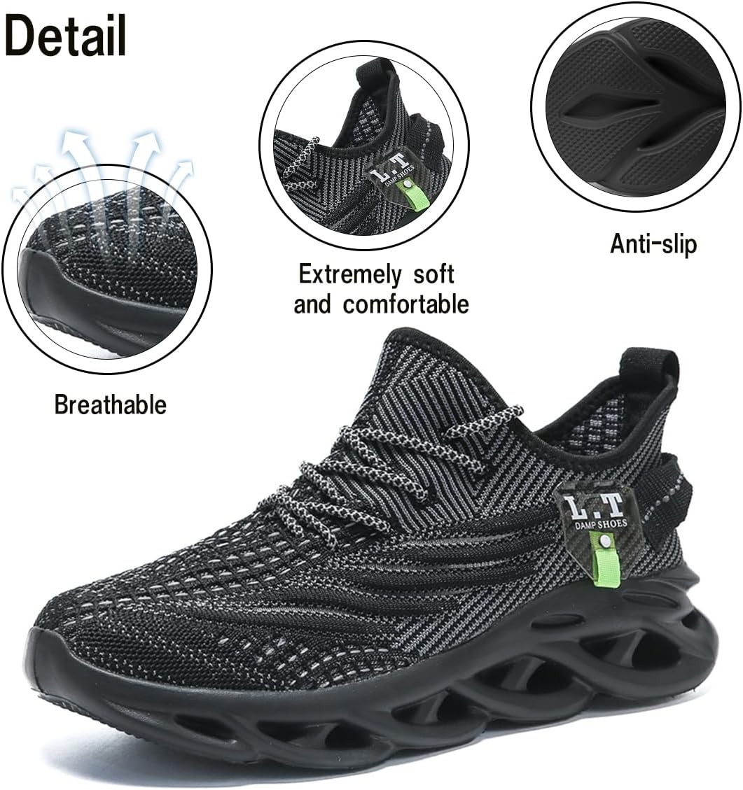 DLWKIPVMen Running Shoes Men’s Tennis Shoes Lightweight Breathable Fashion Sneakers Non Slip Workout Gym Shoes for Running Black