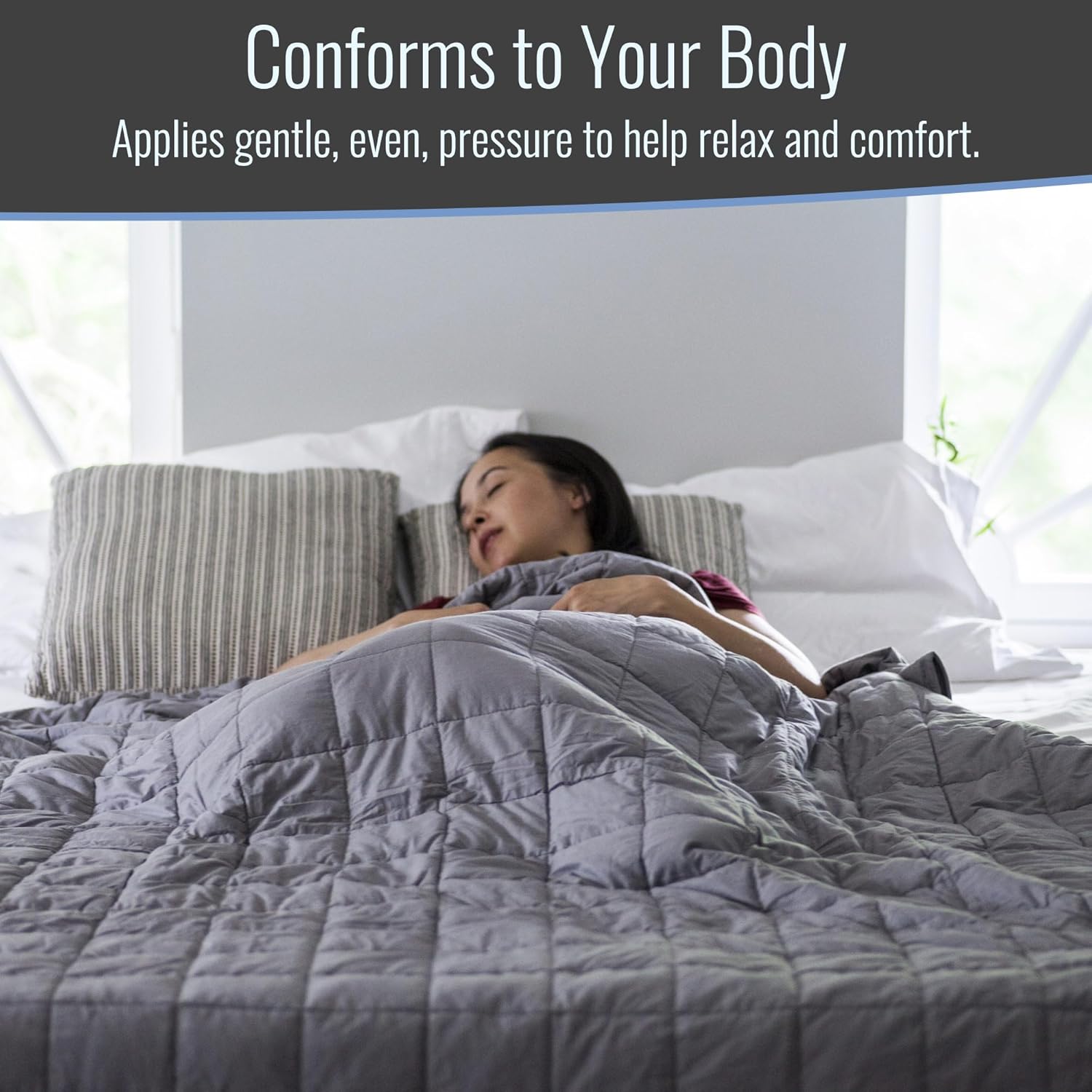 PEACEFUL COMFORT: Weight therapy helps your body regulate your sleep cycle! Our queen size weighted blanket will leave you relaxed and rested.