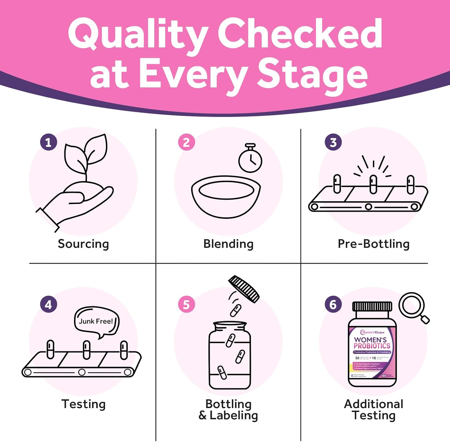 Delayed Release & Shelf Stable: The delayed release delivery allows probiotics to remain intact in stomach acid and reach your intestinal tract alive for optimized potency. Doctor’s Recipes Women Probiotics is shelf stable and is your best choice at home or on the go.