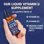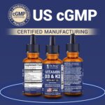 Enhanced Absorption with MCT Oil – Our liquid vitamin D3 drops are formulated with vitamin K2 as MK-7 and medium-chain triglycerides (MCT oil) for superior absorption. These D3 K2 liquid drops are third-party tested in a GMP-certified facility. Non-GMO, gluten-free, and free from artificial additives.