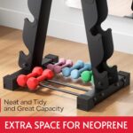 Extra Space at Bottom for Neoprene: This weight tree rack offers ample space for organizing various dumbbells, including neoprene and kettlebells; enjoy a neat and tidy gym with all essentials impeccably arranged