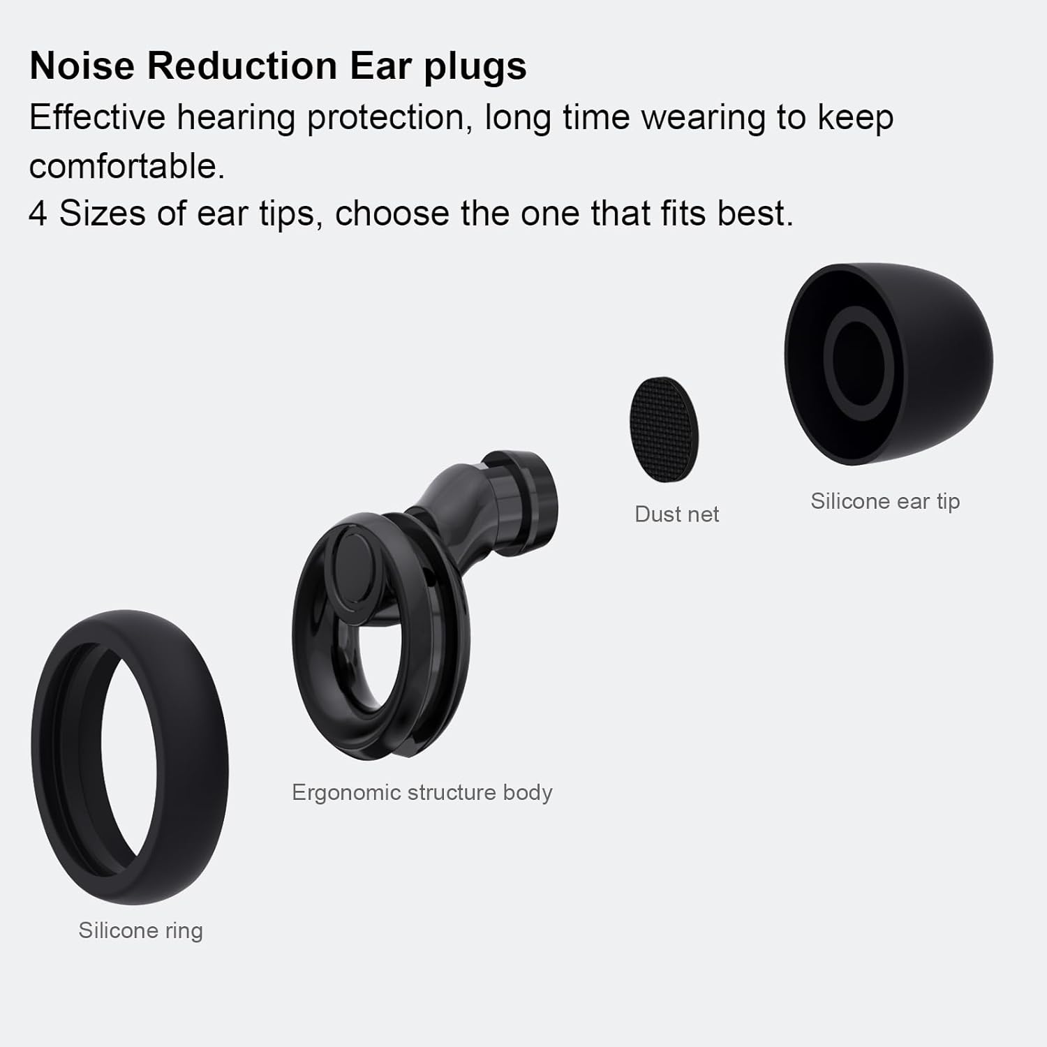 Assemble the earplugs with the appropriate-sized ear caps. Gently insert the earplugs into your ears, then rotate them to a comfortable position for secure wearing. The soft, skin-friendly material ensures lasting comfort.
