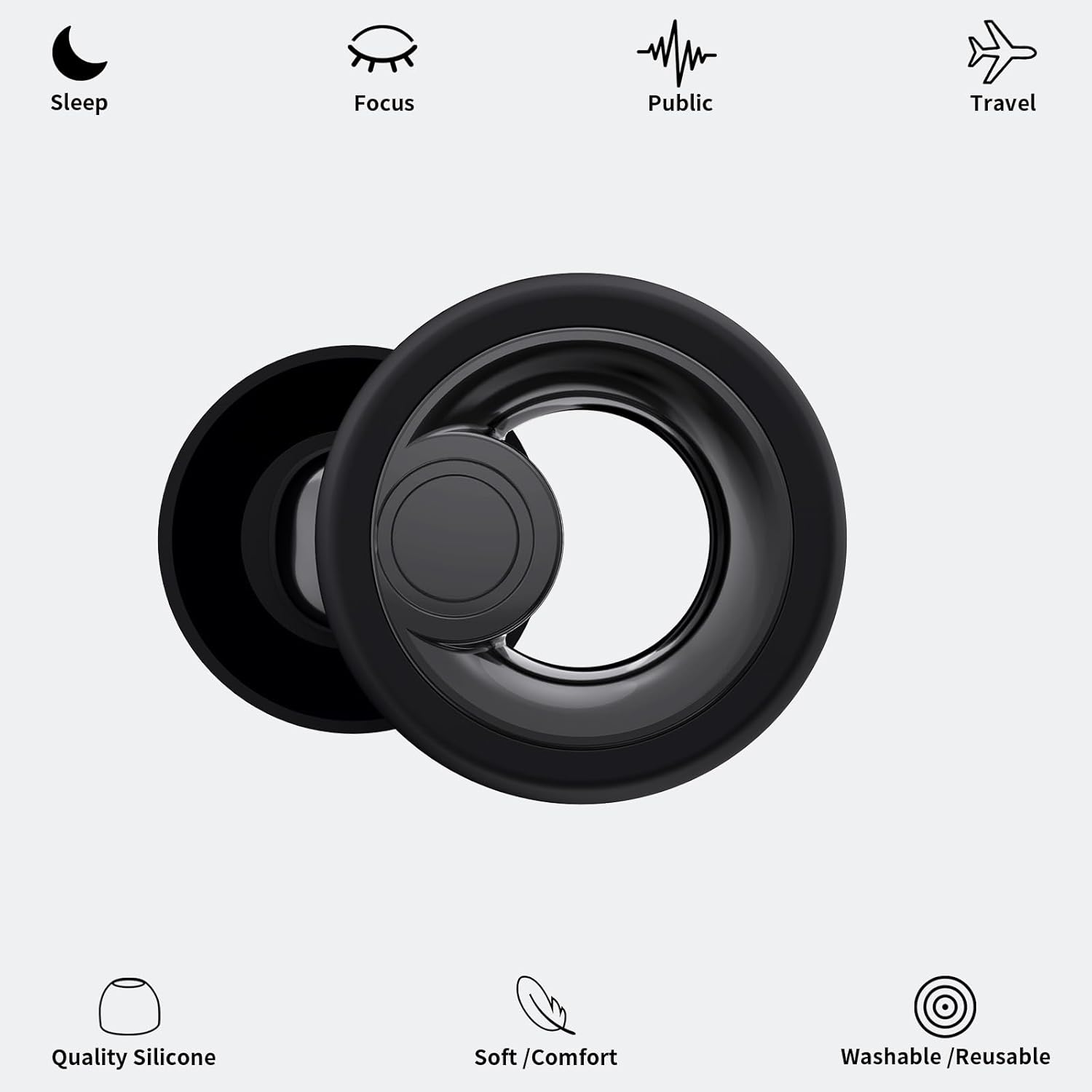 【Comfort & Reusability】Experience comfort with our chic ear plugs, accentuated by the art of electroplating. Wrapped in silicone for enduring comfort, they also offer ear protection. The black and white silicone rings provide adaptable style. These reusable ear plugs are not just comfortable, but also washable.