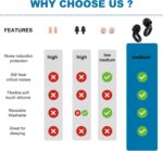 Comfortable To Wear:Noise reduction earplugs come in 4 models, so everyone who uses our noise-cancelling earplugs can find the right size for them. The skin friendly material will fit perfectly to your ears and will not be a burden to wear for a long time.