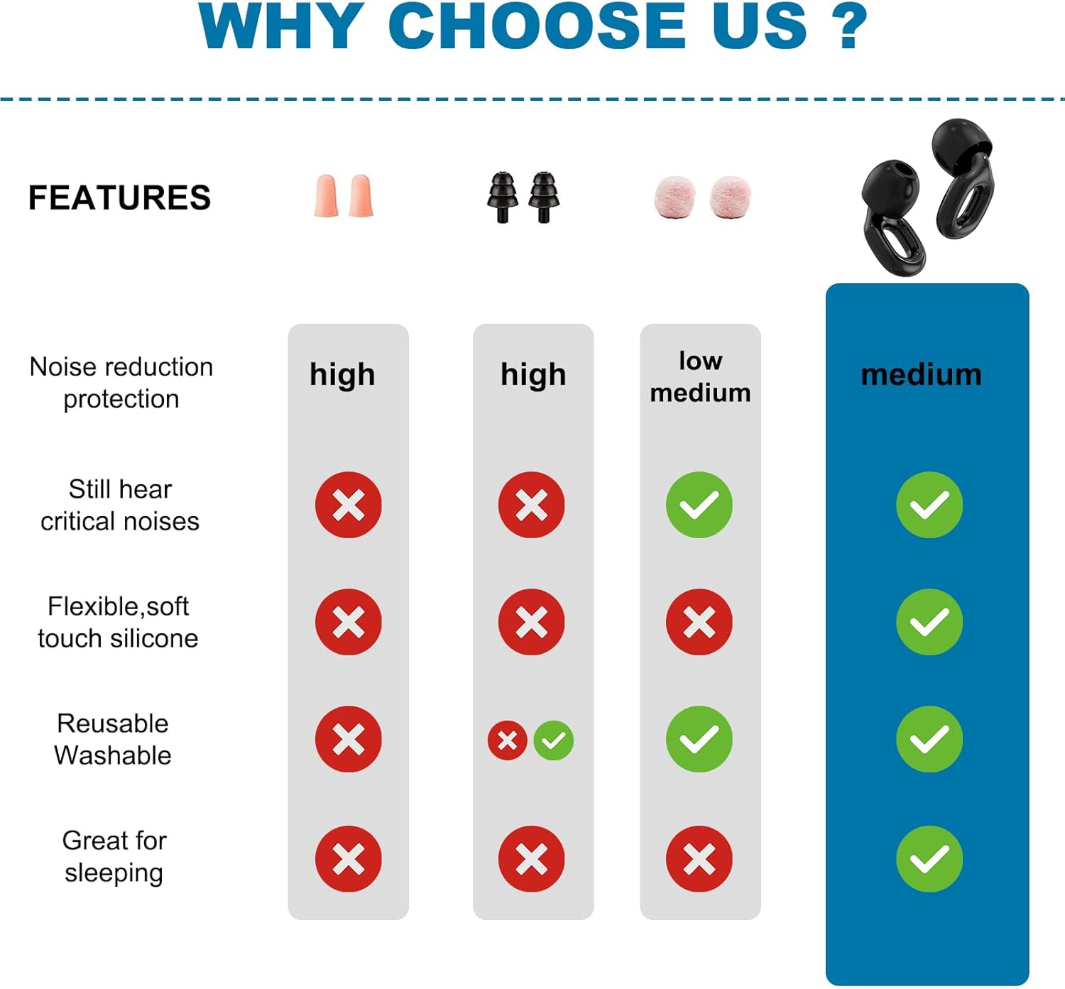 Professional Noise Reduction:Noise reduction earplugs are made of environmentally friendly soft silicone that can be reused and washed. Under the premise of ensuring durability, the noise reduction effect is extreme, and the noise reduction level(SNR) is 26dB, which allows you to quickly eliminate external noise interference no matter what environment you are in.