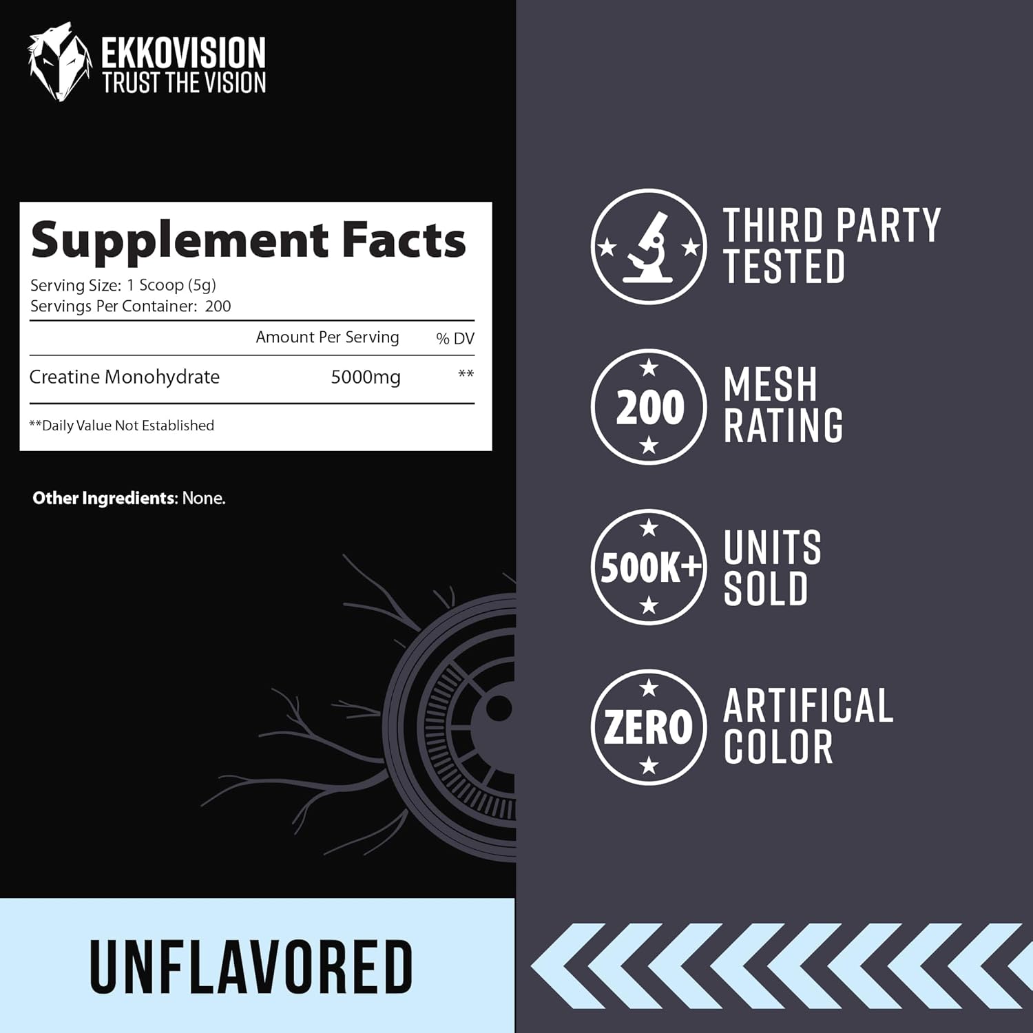 UNFLAVORED FOR CUSTOMIZATION AND FLEXIBILITY: Enjoy the freedom to mix Ekkovision Creatine Monohydrate with your favorite beverages or recipes. With no added flavor, this creatine powder offers full flexibility, letting you personalize your intake to suit your preferences.