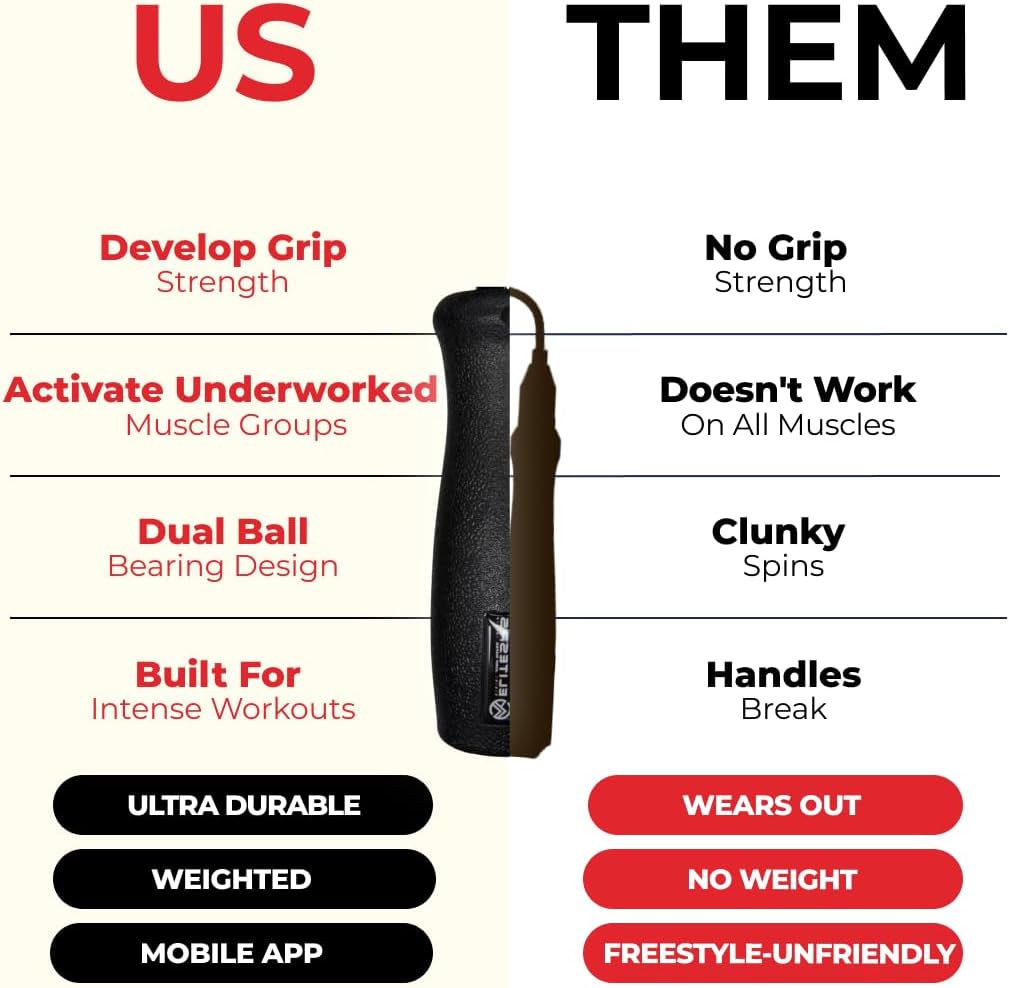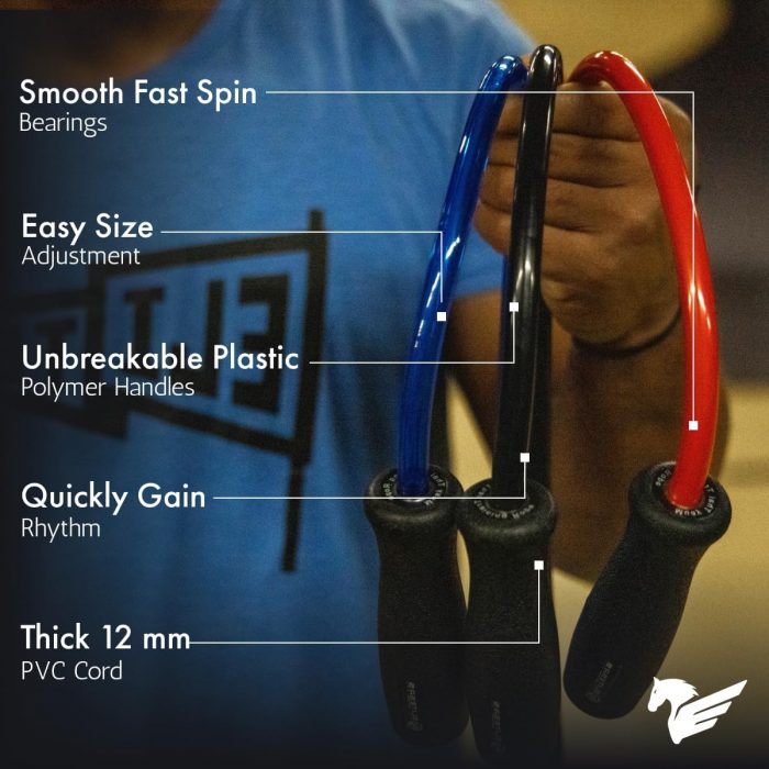 Smooth Spin – Most weighted exercise ropes are clunky and difficult to spin. The Elite Jumps Muay Thai’s dual ball bearing design makes for a fast smooth spin, making it easy for beginners to develop rhythm and fast enough for double unders.