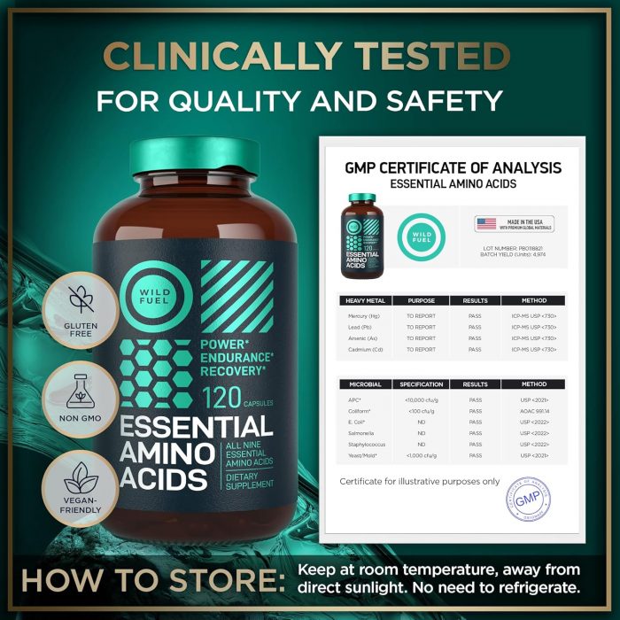 SUPPORTS GENERAL HEALTH. Leucine amino acids along with other essential aminos are meticulously designed to support collagen production for healthy skin and bones, provide energy and overall wellness, and assist in muscle recovery and growth for both men and women.