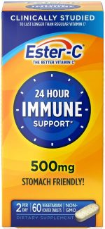 Support your immune health all year long with Ester-C Vitamin C, a superior form of Vitamin C.(1) Ester-C 24 Hour Vitamin C Supplement Tablets for Immune Support offer a unique formula that stays in your system for up to 24 hours, so you have around-the-clock immune support.(1) The metabolites in Ester-C help enhance the retention of Vitamin C in your white blood cells, which are a vital component of your immune system.(1) These vitamin supplements are non-GMO, and Ester-C Vitamin C tablets are manufactured without chemicals to neutralize pH, which makes them non-acidic and gentle on your stomach. Incorporate this antioxidant vitamin supplement into your daily routine to give your immune system the support it needs.(1) Ester-C is the kind of support you can count on 24/7! (1)These statements have not been evaluated by the Food and Drug Administration. These products are not intended to diagnose, treat, cure, or prevent any disease. (2)The Vitamin C in Ester-C has been clinically studied to stay in the white blood cells for up to 24 hours, which is longer than regular Vitamin C. White blood cells are an important component of the immune system.