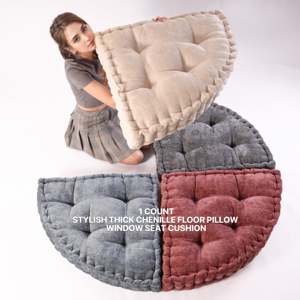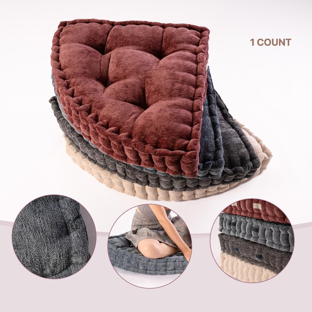 Product Summary: TEXSTEAD Fan-Shaped Floor Cushion Fan Floor Pillow, Meditation Cushion for Sitting or Yoga, Pizza Cushions Thick Outdoor Seating for Kids for Adults 20"*20"