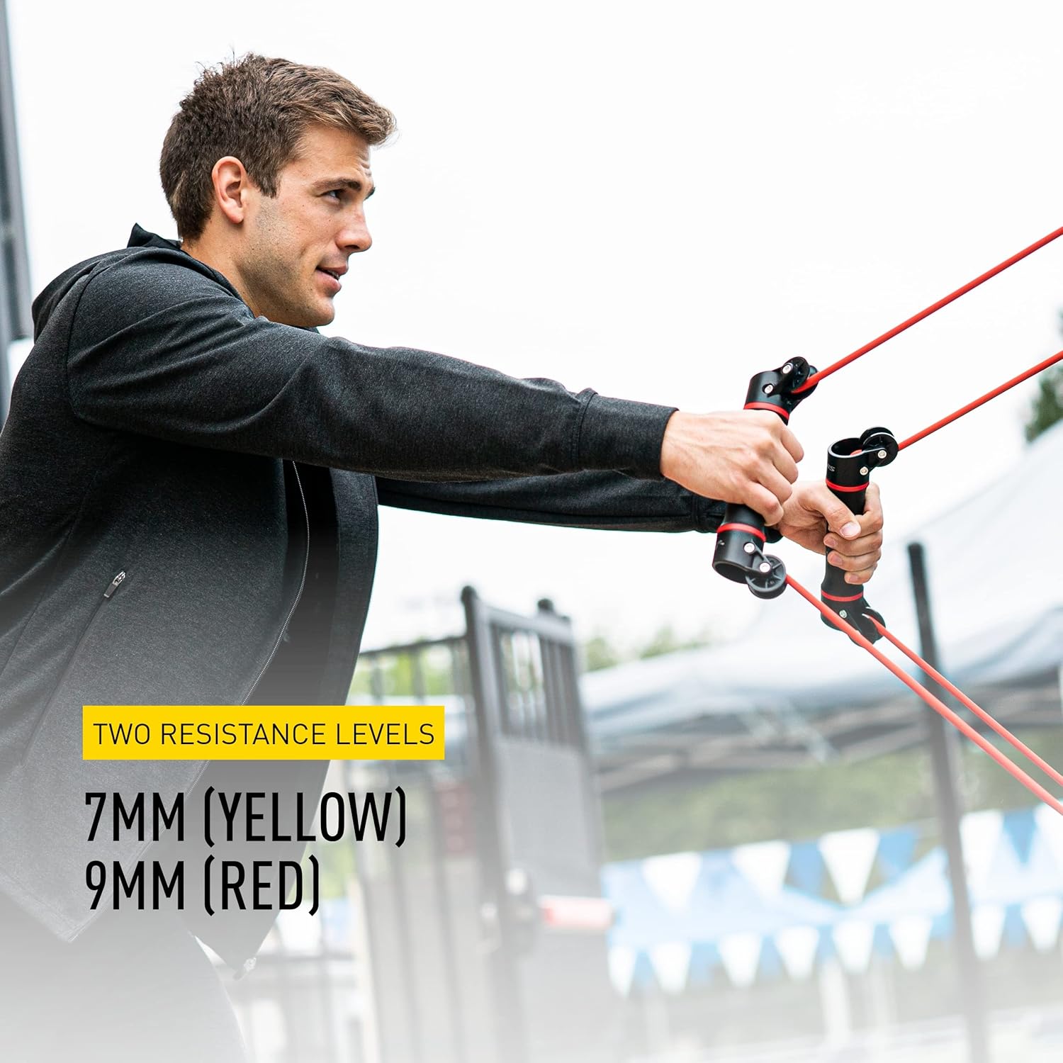 Stretching Bands: Dual anchor points and rotating handles provide versatility for vertical, horizontal, and diagonal exercises