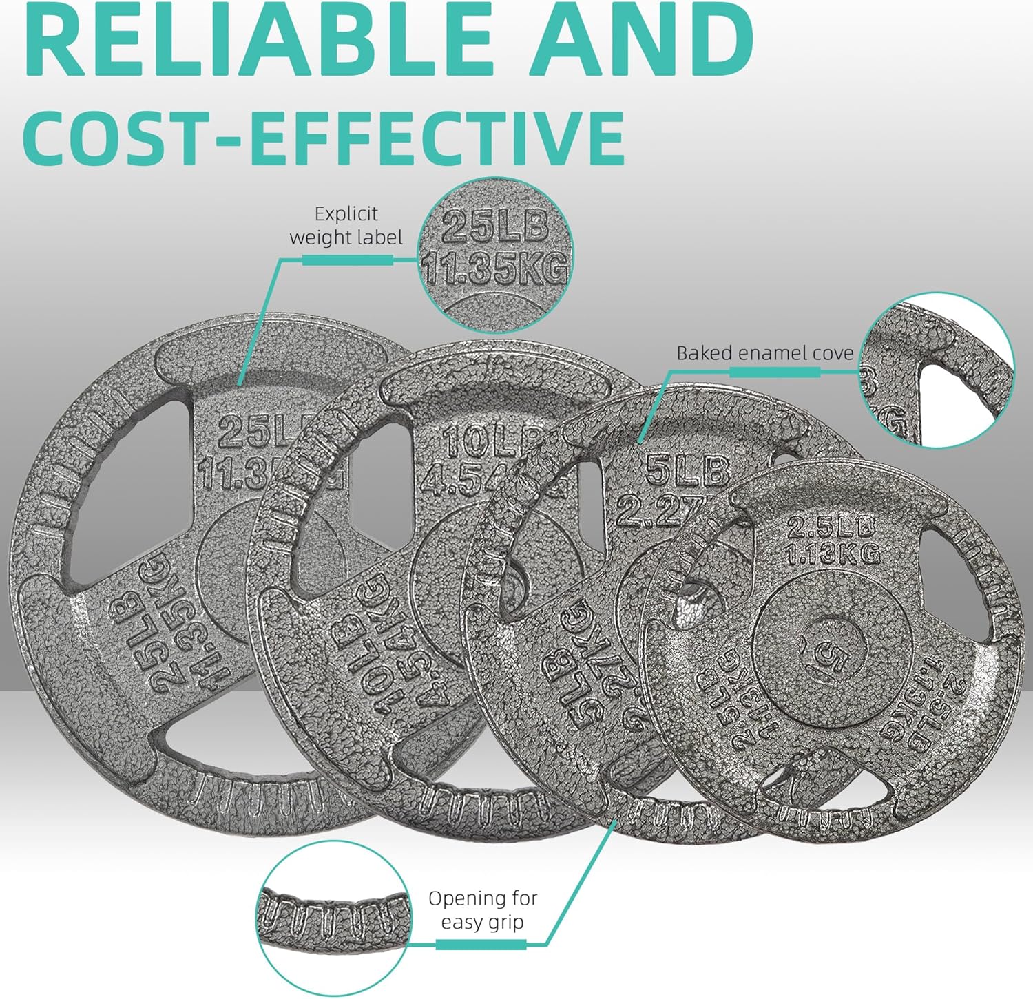 The plates are made of solid cast iron with a 1-inch center hole that fits any standard bar with a diameter of 1″. They can also be used with 1″ dumbbell bars.
