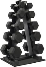 Home Exercise Fitvids Rubber Encased Hex Dumbbell Set with Rack,…
