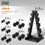150 pounds set: 1x A-Frame rack (5-tier), pair of 5lbs, 10lbs, 15lbs, 20lbs and 25lbs