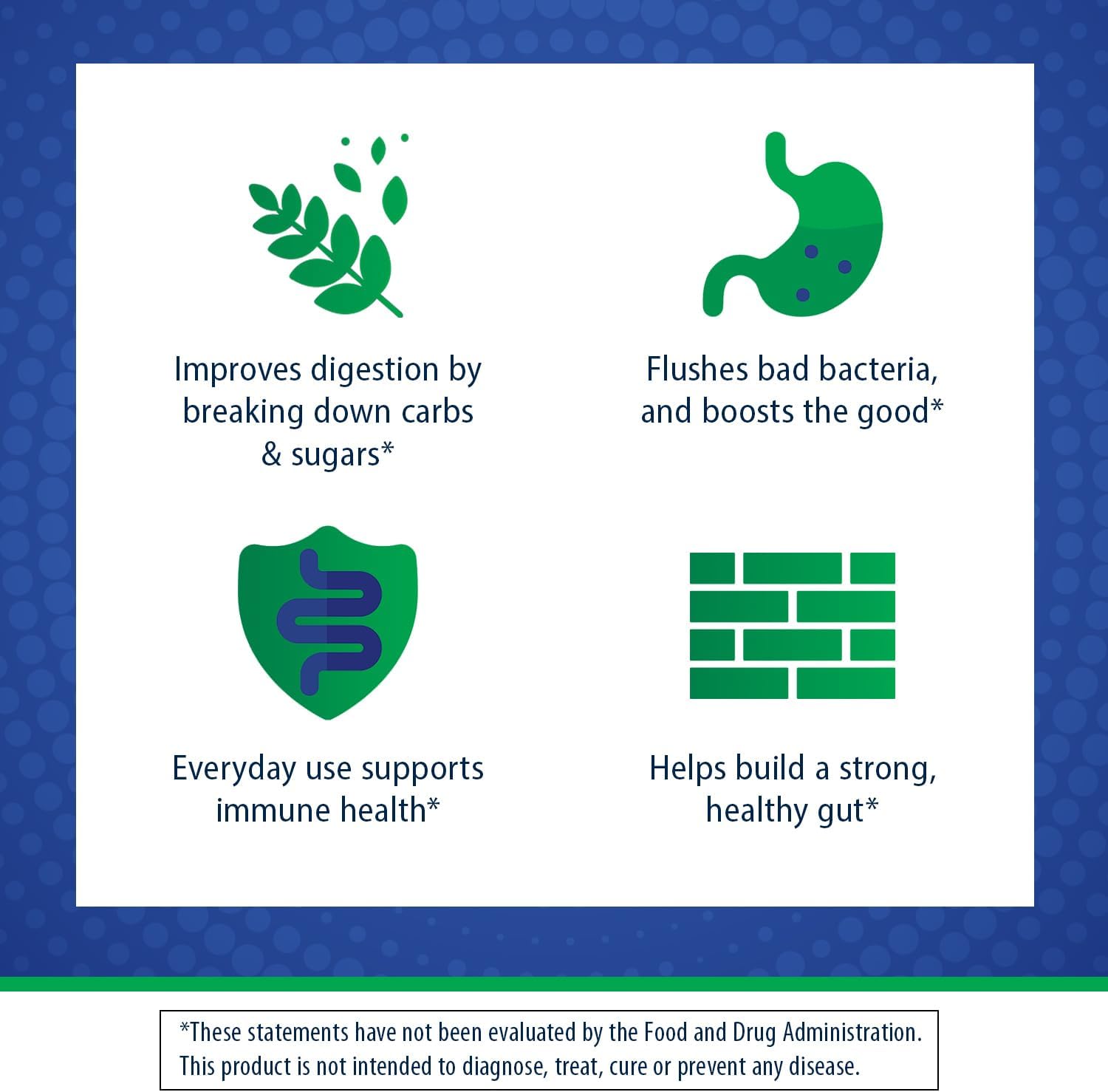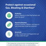 Our proprietary blend: Florastor’s Dual Action Probiotic with digestive enzymes and botanicals to help protect against occasional gas, bloating, and diarrhea; provides bloating relief for women and men.*