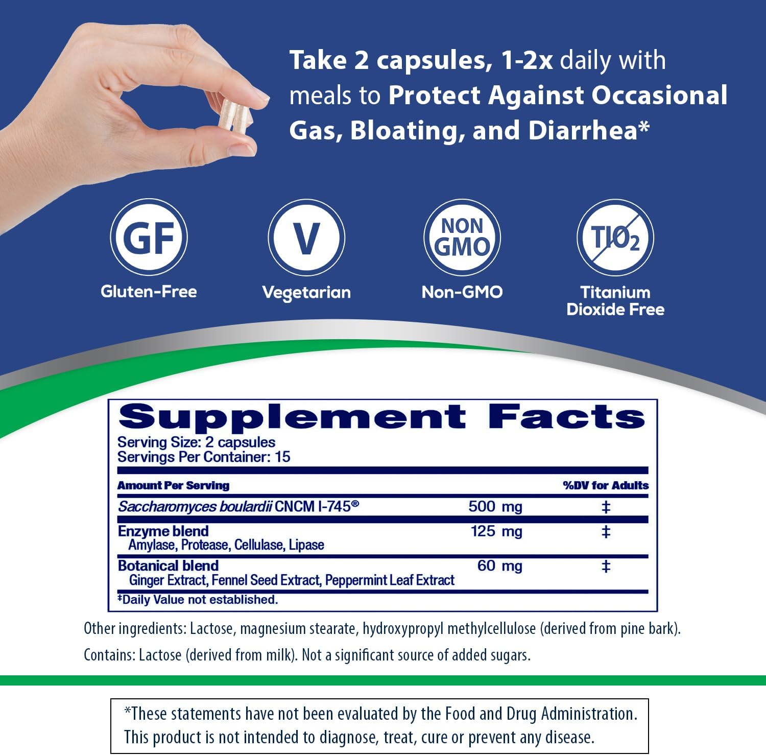 Unique strain: This supplement contains the clinically studied probiotic strain Saccharomyces boulardii CNCM I-745 for overall gut health; this effective strain has over 70 years of safe use and research*