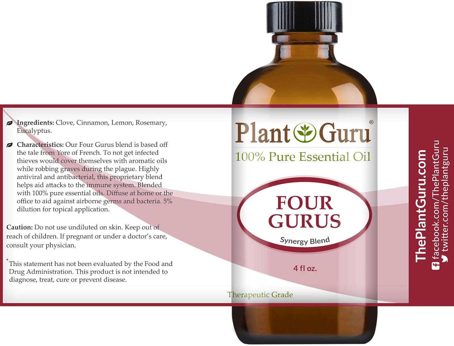 Our popular Four Gurus blend of essential oils is based off the tale from yore of French thieves who would cover themselves with cloves, rosemary, and other aromatics while robbing people during the plague.