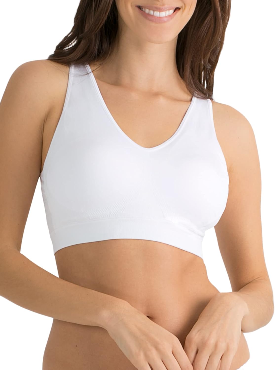 So soft, so comfy, so smooth. The Fruit of the Loom 360 Stretch Seamless Comfort Longline Bralettes are perfect for low/medium activities and even better for everyday wear. Comfort stretch, fabric shapes to fit you. Support comes from the double-lined smoothing, ultra-wide wings and longline design. The perfect under outfit bra, seamless full coverage bra lays flat under your clothes and longline design allows it to double as a top. Bras for women shouldn’t be itchy, so we’ve designed these tag, seam-free and wirefree! Wide comfort straps evenly distribute weight so that they won’t dig-in.