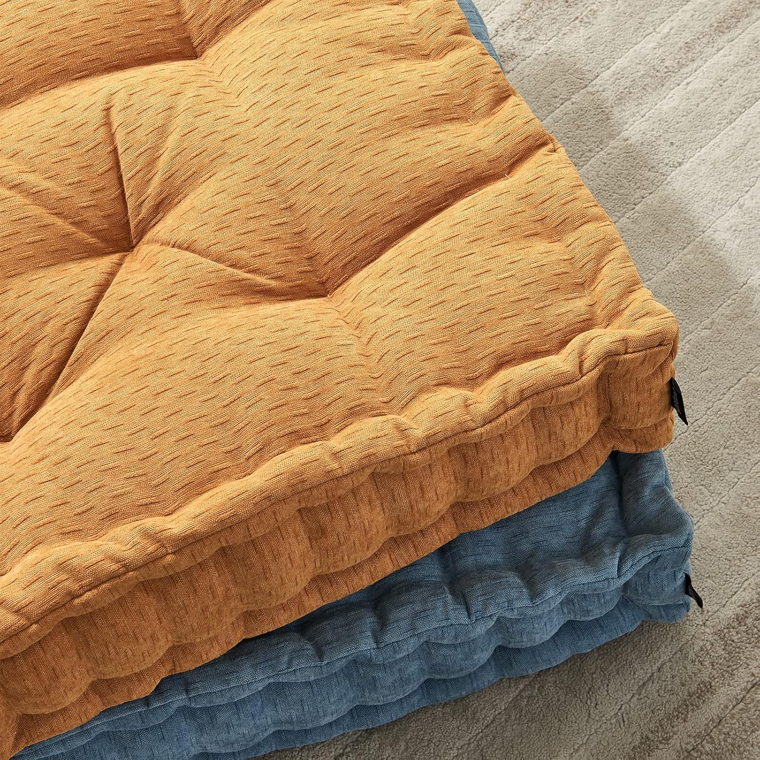 SOFT FABRIC: The floor pillow is skin-friendly Chenille fabric, the mid filling is PP cotton fabric.Our seat cushions are sewn in nine positions, rather than positioning buckles, more comfortable to use and not easily deformed.
