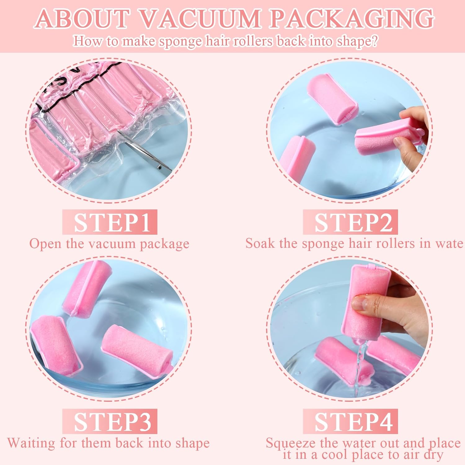 Note: this product is vacuum packed; It is recommended to leave it for 3 days before use to restore it to a round shape; And easy to use rollers grip the hair without the need for pins and clips; Just open the plastic fixed band wrap your hair on the roller, close the fixed band, go to sleep; Wake up you can get a beautiful curls