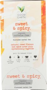 Pack of 4 – We’re Good Earth and we make tea. But we don’t just stick to the ordinary stuff. We seek out the exotic. The unexpected. The moments where you can really let loose. Because that’s what tea should do. and so that’s how we make it. We’ve been at this for 40+ years, planting our roots in the 1970s with our Sweet and Spicy which went from a local favorite to a country-wide “tell my friends but don’t take mine” tea. Good Earth now has teas that span all sorts of tea varietals, herbs, botanicals and flavors … naturally good things carefully chosen and masterfully blended together for a one-of-a-kind taste experience.