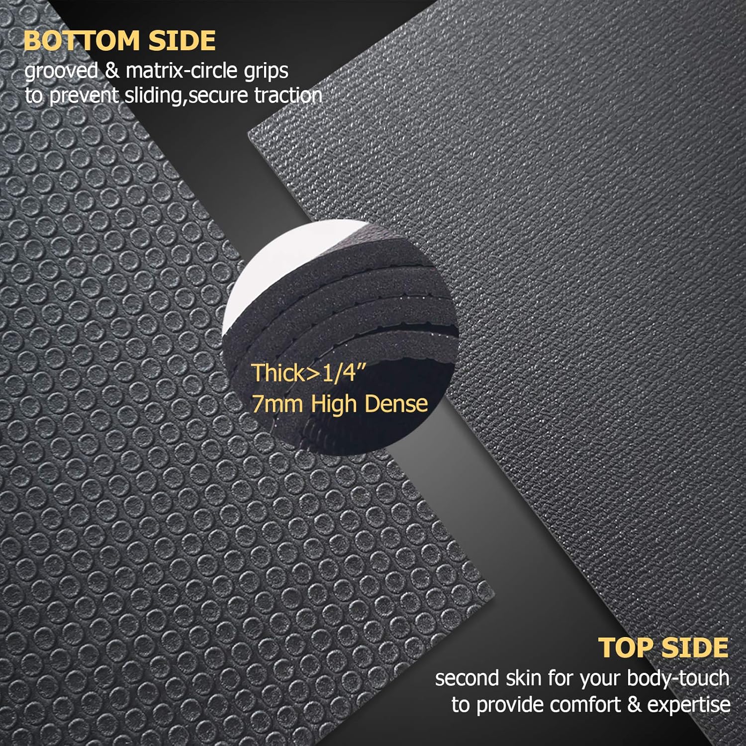 【DOUBLE SIDED NON-SLIP SURFACES】The spacious mat has double-sided no-skid surfaces for enhanced traction and superior grip. Grooved & matrix-circle underside stops the mat from sliding on the floor. The subtly textured surface prevents hands and feet from slipping out of position to prevent injuries.