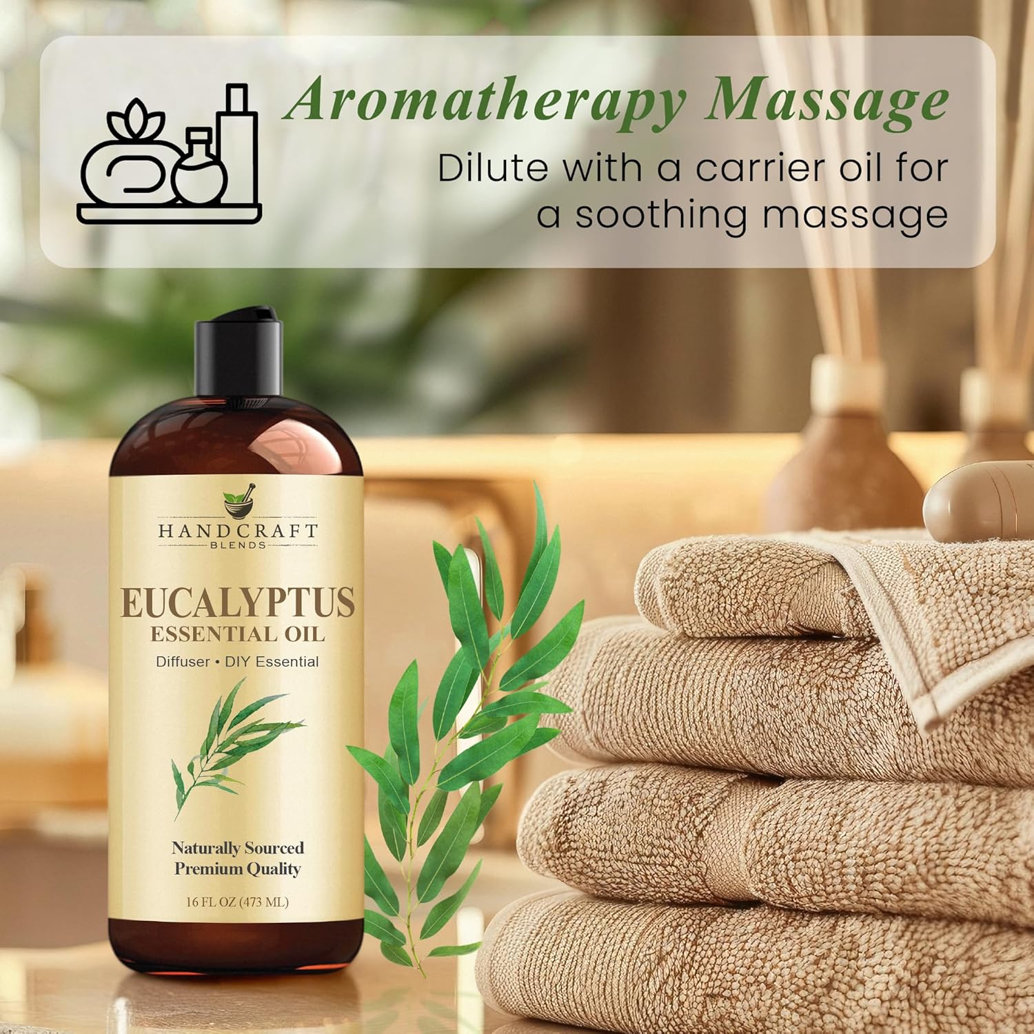 BULK SIZE EUCALYPTUS OIL – This 16 Fl Oz bottle is a cost-effective choice, providing ample supply for DIY projects, diffusers, and everyday home uses.
