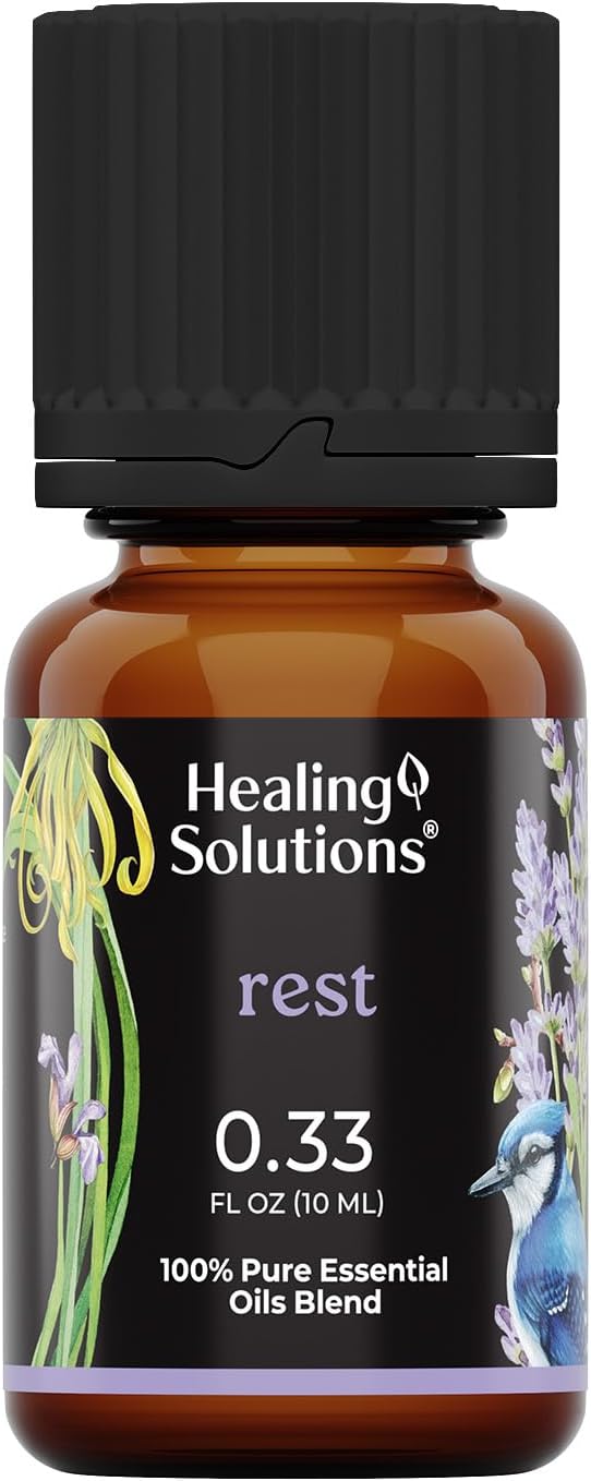 Introducing the Healing Solutions Rest Blend Essential Oil, a 100% pure, undiluted, and therapeutic grade essential oil designed specifically to promote restful sleep. This organic sleep essential oil is a carefully crafted blend of clary sage, copaiba, and lavender essential oils, known for their calming and soothing properties, making it an ideal choice for those seeking a natural solution to improve their sleep quality. The benefits of using this essential oil blend are numerous. By incorporating this goodnight essential oil blend into your nightly routine, you can experience a deeper, more restful sleep, which in turn contributes to overall well-being. Whether you diffuse it in your bedroom or add a few drops to your bath, this relaxing oil for diffuser helps create a serene and tranquil environment conducive to sleep. This product effectively addresses the common issue of sleeplessness or difficulty falling asleep, offering a natural and holistic remedy. Many individuals struggle with finding a peaceful state of mind before bed, and this diffuser oil for sleep is designed to ease that transition, helping you to sleep more soundly throughout the night. Unique features of the Healing Solutions Rest Blend Essential Oil include its steam-extraction process, ensuring purity and potency without any additives or harmful chemicals. Each batch is bottled in a 10ml amber glass bottle with a Euro style eyedropper for convenience and precision in application. This essential oil for sleep is also tested for purity, guaranteeing its quality and effectiveness. For optimal use, add a few drops to your diffuser or humidifier, or dilute with a carrier oil and apply to the soles of your feet before bedtime. Essential oils sleep and relax properties make it versatile for various applications. Please note, the product does not come with a diffuser or carrier oil, which must be purchased separately.