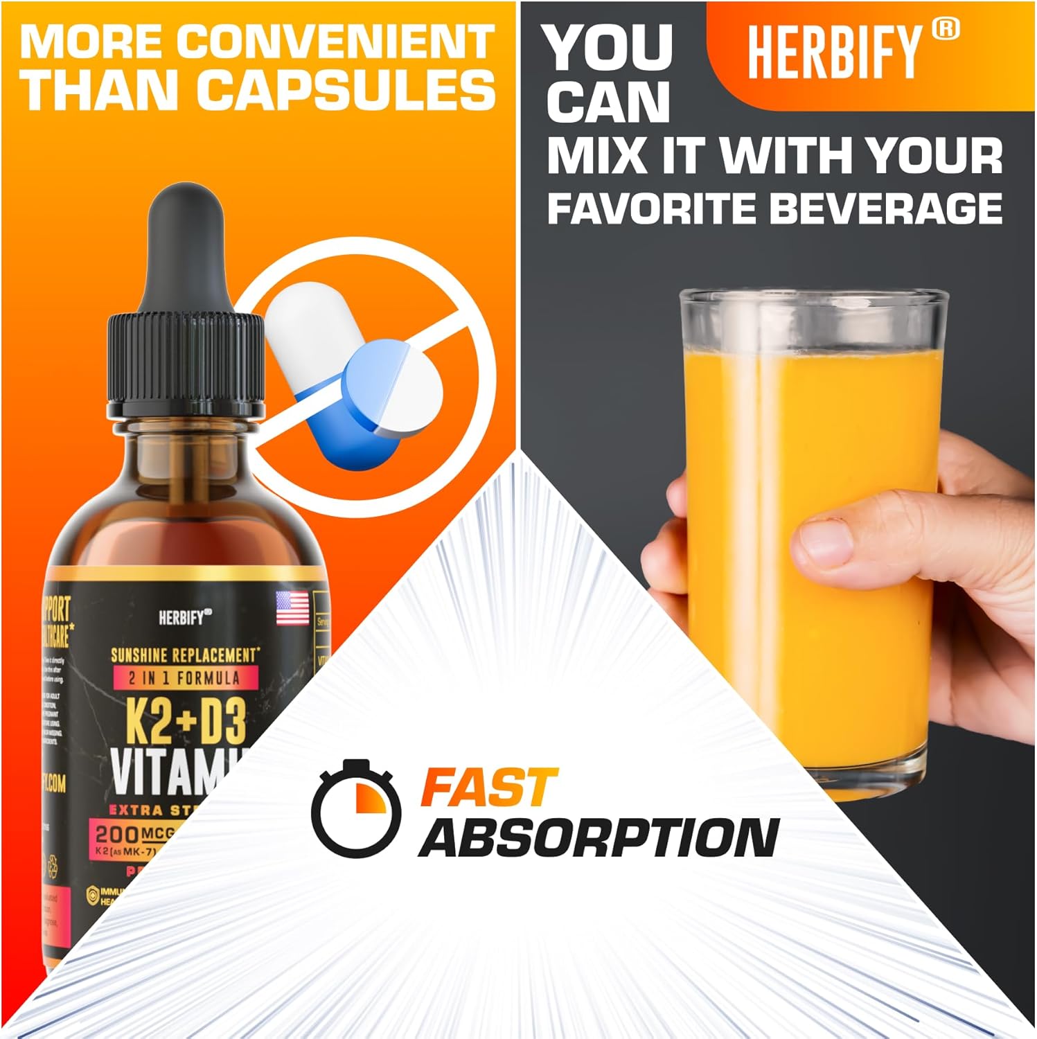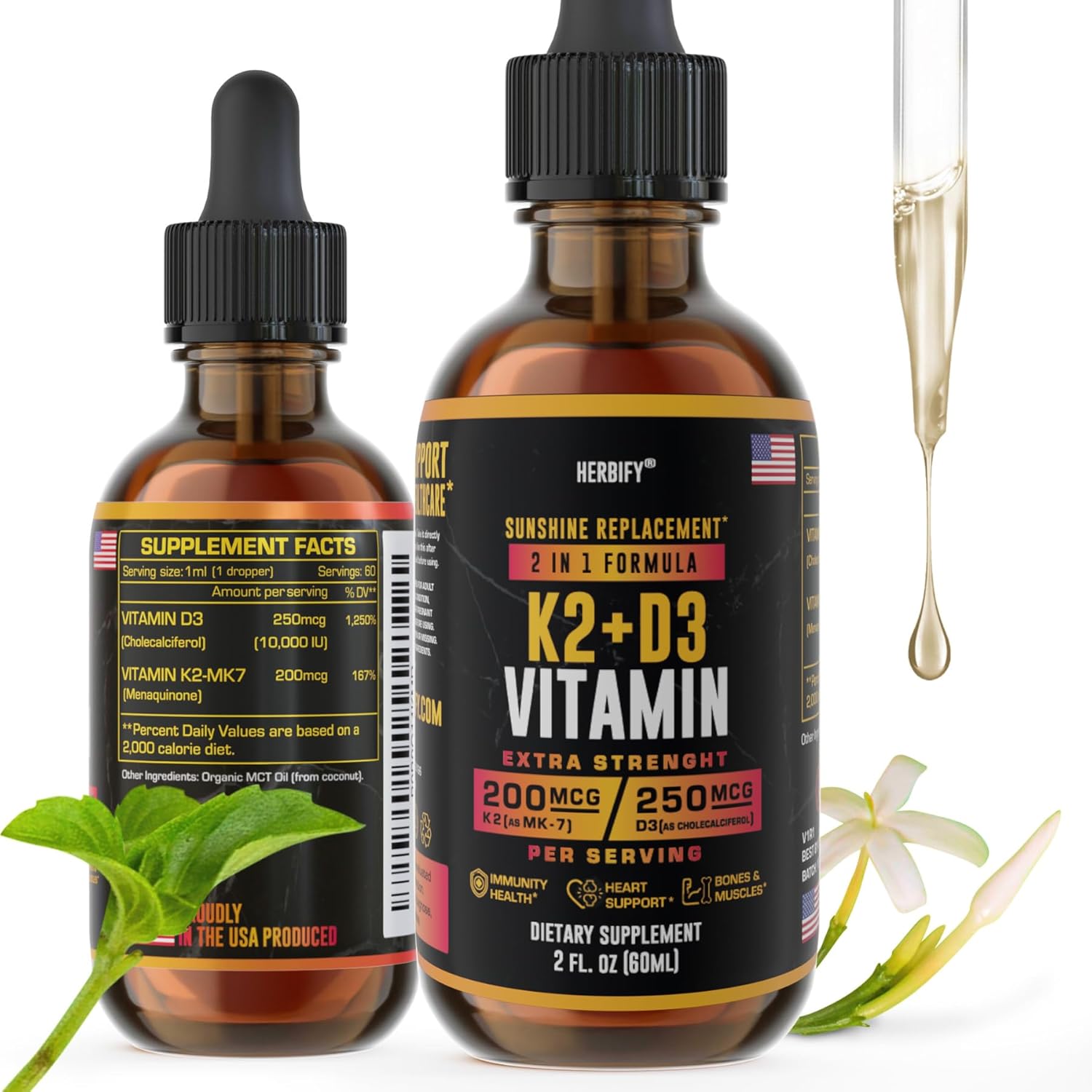 HERBIFY Vitamin D3 K2 Drops – Liquid Vitamins for …