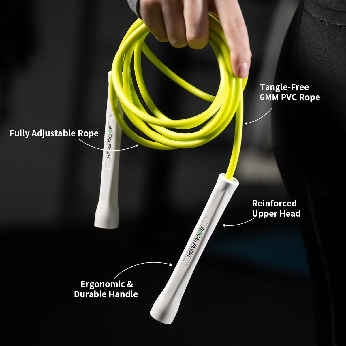 Tangle-Free & Easy To Adjust. Hererope features more rope 10% stiffness and more weight guaranteeing that your jump rope not easy to tangle. Features snap-lock cord ends to easily resize the rope, 10ft length will fit jumpers up to 6’4″ tall.