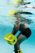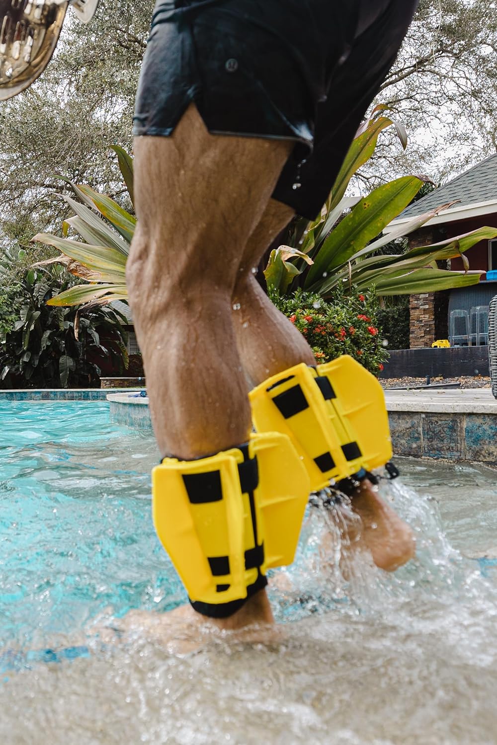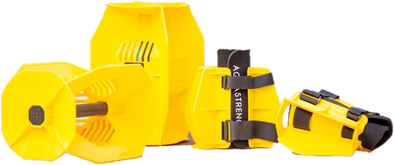 Total Body System – Combining the bells and fins together will give you a dynamic full body aquatic workout for fitness and conditioning and also a fuller range of motion, stabilization and coordination for injury recovery and rehabilitation. The bells give you a dynamic hi intensity low impact cardiovascular aquatic workout while engaging the upper body, arms and core that strengthens, builds and tones the muscles. The lower body Fins effectively tone, sculpt and strengthen your core muscles, legs and gluteal muscles. Complete package of pool weight for total body water workouts. The Bells measure 12″ x 7.5″ and the Fins are 6.5″ x 2.5″ (from the leg).